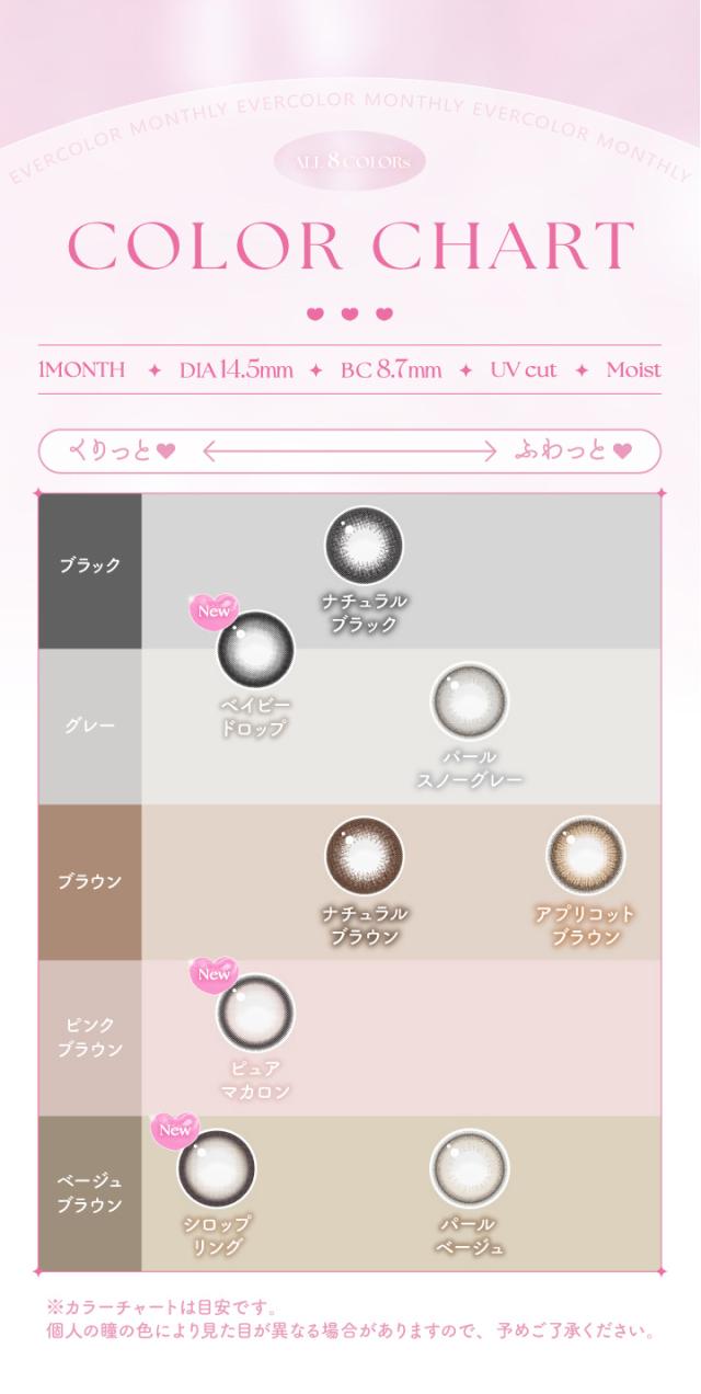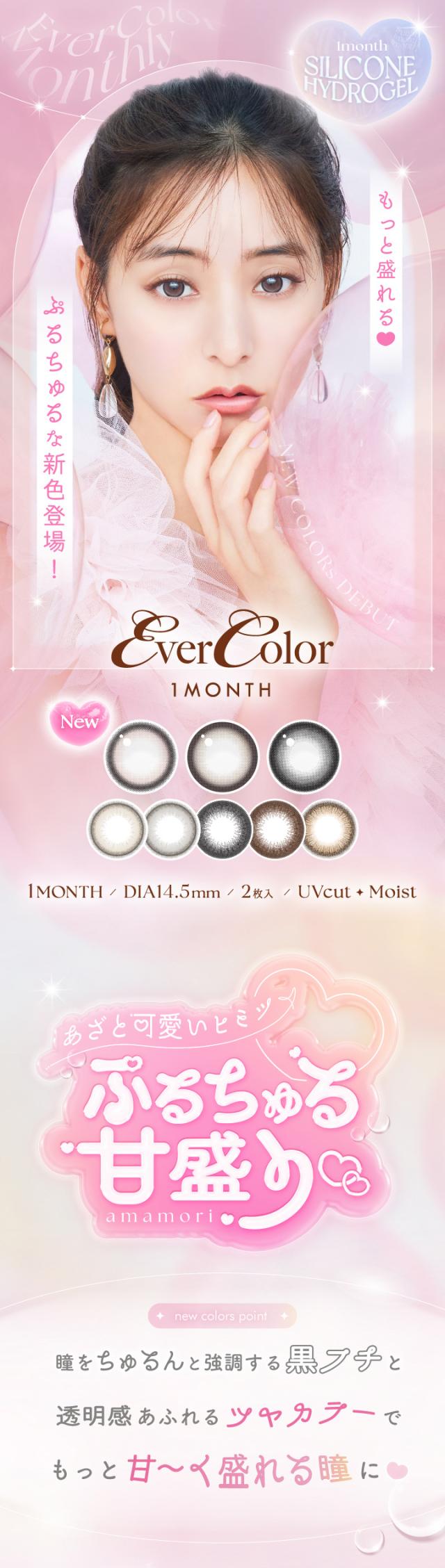 新色登場 EVER COLOR エバーカラー マンスリー 1箱2枚入り 1ヶ月 1month マンスリーカラコン カラコン エバカラ 14.5mm 新木優子 細フチ 度なし 高度数 ナチュラル