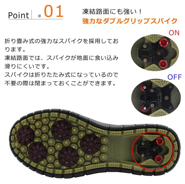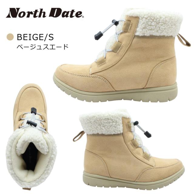 North Date ノースデイト レディース スパイク スノーブーツ 38044 ゴム紐 防寒 防滑 防水 ショートブーツ 靴 ダテハキ 北海道