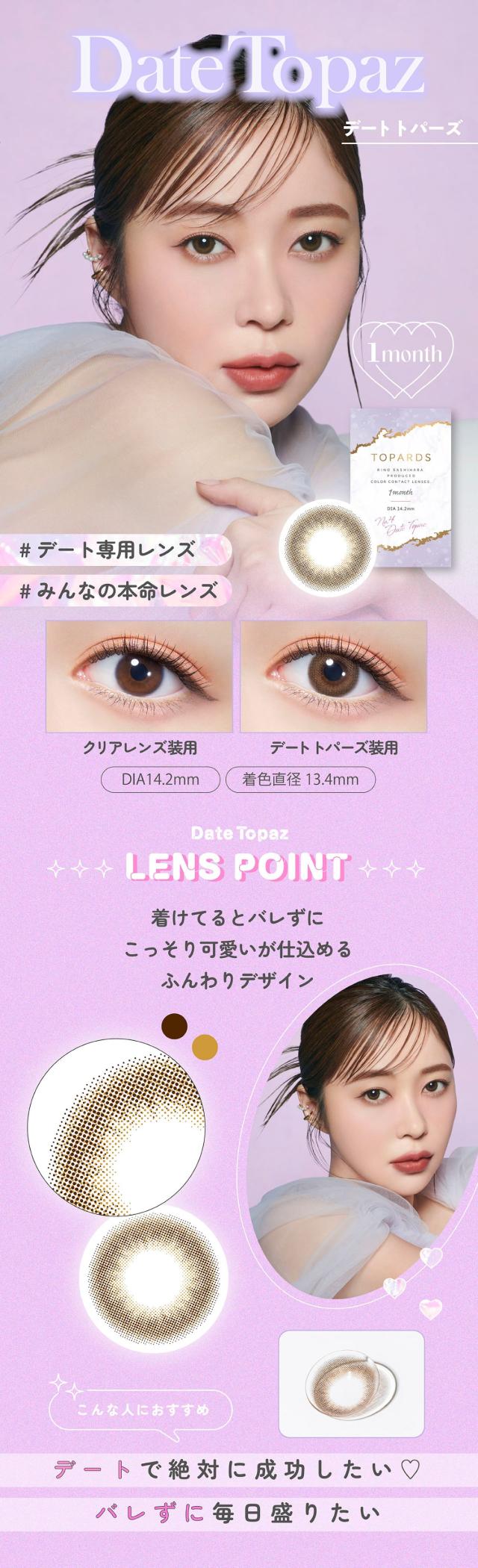 トパーズワンマンス カラコン 1ヶ月 1箱2枚 指原莉乃 デートトパーズ 度あり 度なし DIA14.2mm カラーコンタクト TOPARDS 1month さっしー ナチュラル 自然