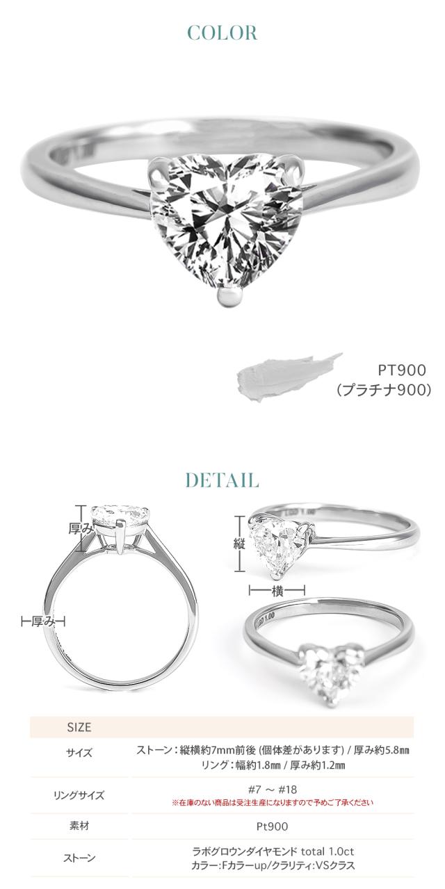 ダイヤモンド リング プラチナ ハート 指輪 1カラット 一粒 ダイヤリング プラチナリング ダイヤモンドリング 一粒ダイヤ ダイヤ一粒 プロポーズリング ラボグロウン レディース ジュエリー アクセサリー シンプル ブランド 誕生日 プレゼント 女性 ギフト ホワイトデー