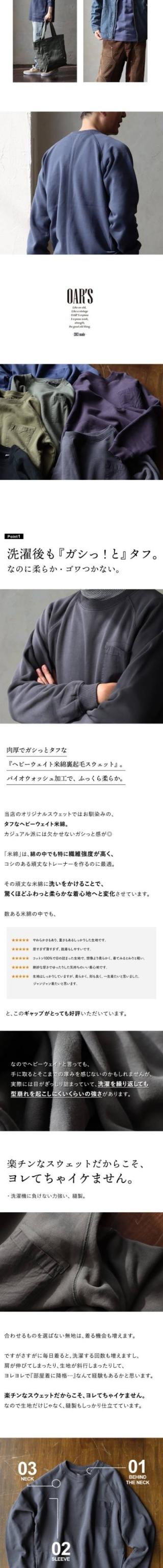 トレーナー スウェット メンズ レディース 暖かい 裏起毛 しっかり 丈夫 軽い 柔らかい USA コットン 綿100 活性染め 秋 冬 ラグラン リブ ポケット お尻 隠れ カバー 色合い スエット アメカジ パティ OAR’S オールズ