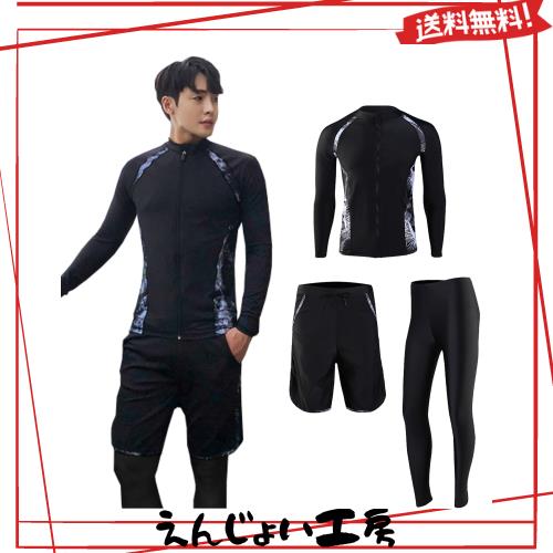 [Zwinz] ラッシュガード 水着 メンズ 水着 メンズ 上下 フィットネス水着 3点セット 競泳水着 水着 サーフパンツ レギンス 長袖 前開き U