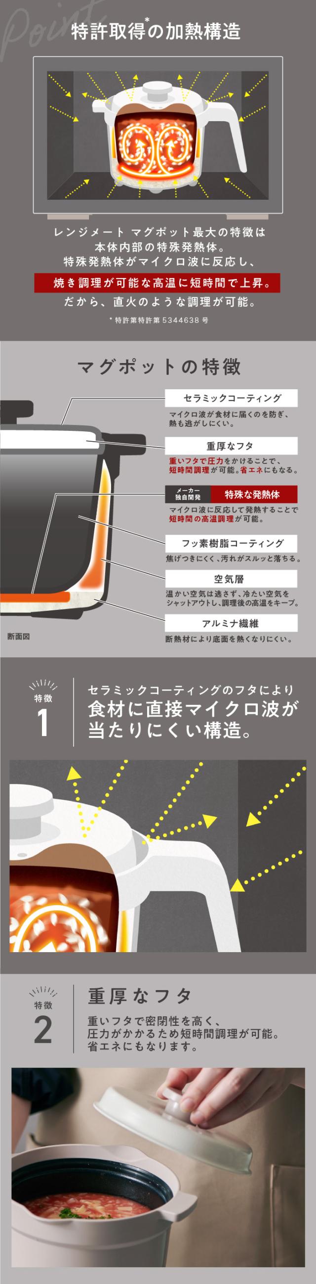 レンジメート マグポットの最大の特徴は本体内部の特殊発熱体。