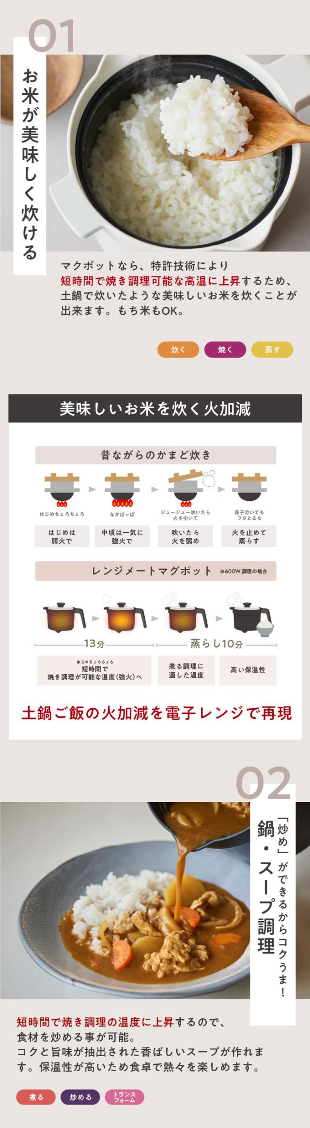 【公式】 レンジメート マグポット (RANGEMATE MUGPOT) 電子レンジ専用調理器 レシピ付き ご飯 米 炊ける 鍋 一人鍋 深型 レンジメイト MUK(エムユーケー)