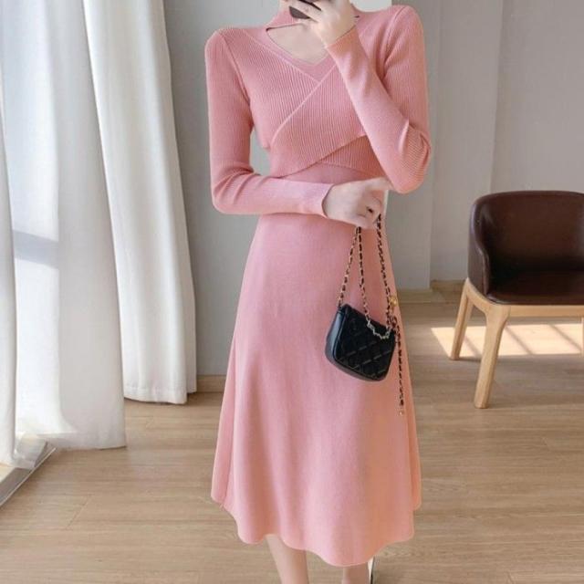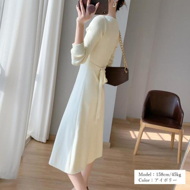 オフィスカジュアルからパーティーまで、多彩なシーンで活躍するニットワンピースです