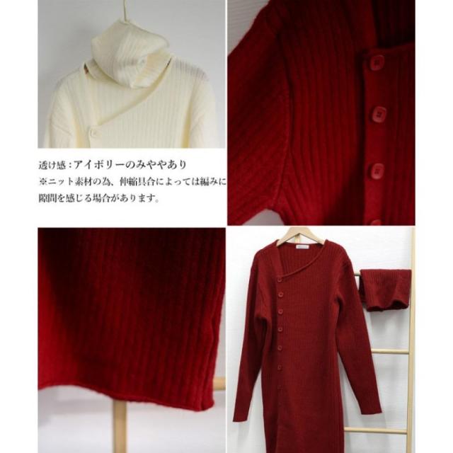 スヌード付き リブニットワンピ レディース おしゃれ ロングワンピース 秋冬 大人カジュアル きれいめ 着やせワンピース