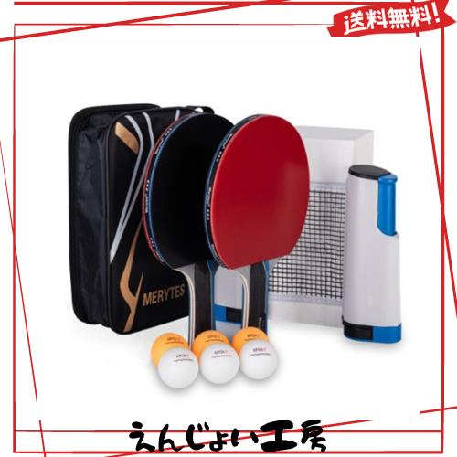 Merytes ポータブル 卓球 ラケット ポータブル 卓球セット ラケット2本 ピンポン球6個 卓球用品 卓球ラケット 卓球ボール