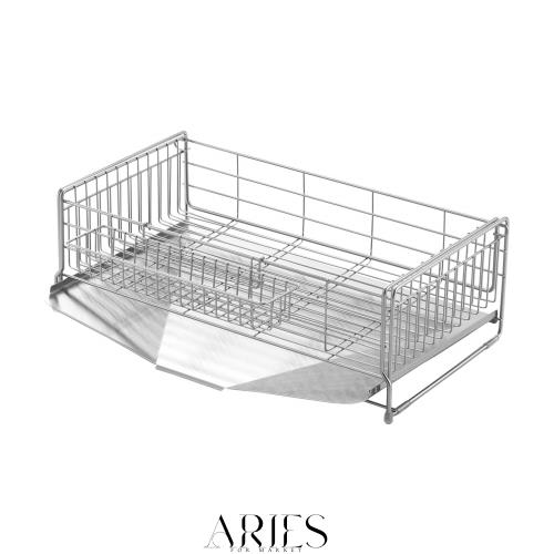 スライドタイプのステンレス水切り 洗い物の量に合わせてスライドできる 斜めのトレーなので、水がシンクに流れていく