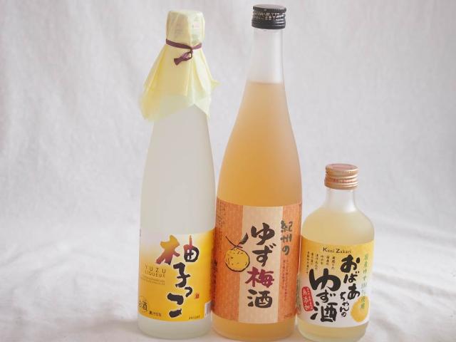 爽やかなゆず酒3本セット(柚子っこ7%(愛知県) 紀州ゆず梅酒12% 国産ゆず100%おばあちゃんのゆず酒 7度) 500ml×1本 720ml×1本 300ml×1本