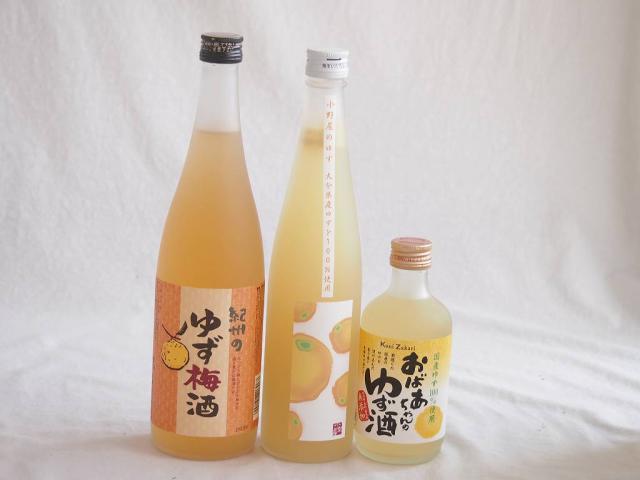 爽やかなゆず酒3本セット(大分県産ゆず100% 小野屋のゆず 紀州ゆず梅酒12% 国産ゆず100%おばあちゃんのゆず酒 7度) 500ml×1本 720ml×1本 300ml×1本