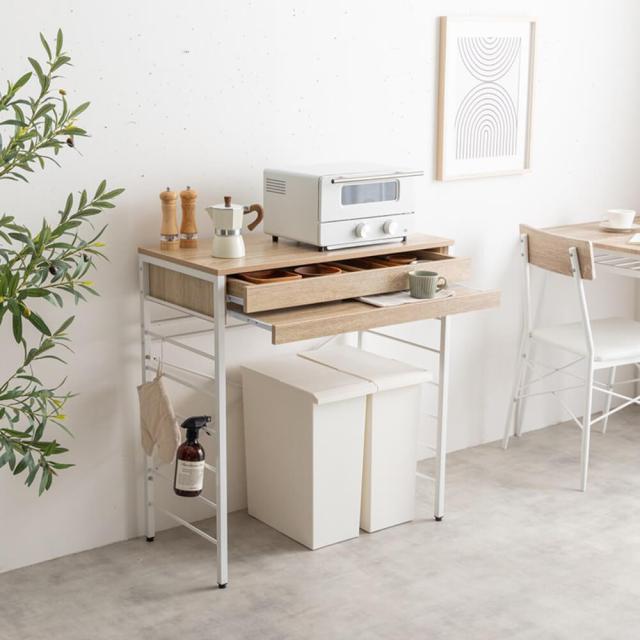 ワイドな引き出しは、調理器具やキッチン小物の収納にぴったり。