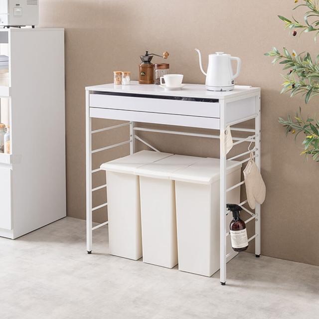 ゴミ箱の上に設置することで、手狭なキッチンにありがちな空間不足を解消し、すっきりとした作業スペースを確保します。
