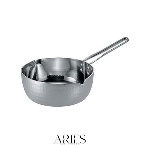 ●腐食に強く焼けない。クリーンなステンレスハンドル!●炎にも焼けないステンレスハンドルで丈夫で長持ち。●業務用に適した厚板仕様で均一加熱。●調理に便利な容量目盛付。
