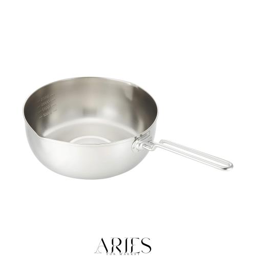 ●熱伝導率に優れた軟鉄を、耐久性に優れた18-10ステンレス鋼でサンドプレス! ●ハンドルが熱くなりにくい特殊構造 ●見やすい目盛付き。目盛表示 1000・1500・2000・2500(c.c.) ●ガスはもちろん、IH調理機にも対応