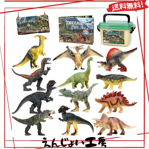 恐竜おもちゃ 12個恐竜 フィギュア きょうりゅう おもちゃ T-Rex ヴェロキラプトル 収納ボックス ディノブック 現実的な恐竜フィギュア