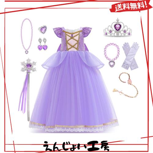 [Agture] ラプンツェル風 ドレス コスプレ 子供 ディズニー塔の上のラプンツェル風 ドレス ディズニー風プリンセス ドレス ワンピース コ