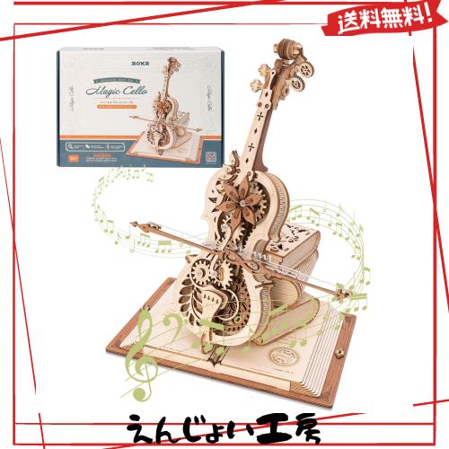 ROKR 立体パズル マジック チェロ メカニカル オルゴール 自動再生 電池不要 木製 3D ウッドパズル 工作キット DIY クラフト 組み立て モ