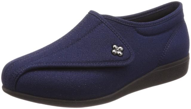 快歩主義 介護シューズ 軽量 転倒予防 リハビリ 幅広3E KHS L011 レディース ネイビーラメ 24.5 cm 3E
