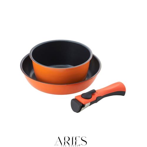 ◆商品名:ベストコ フライパン ポット 取っ手 3点セット IH ガス火対応 オレンジ NM-221 ベストウェアレジスタンス