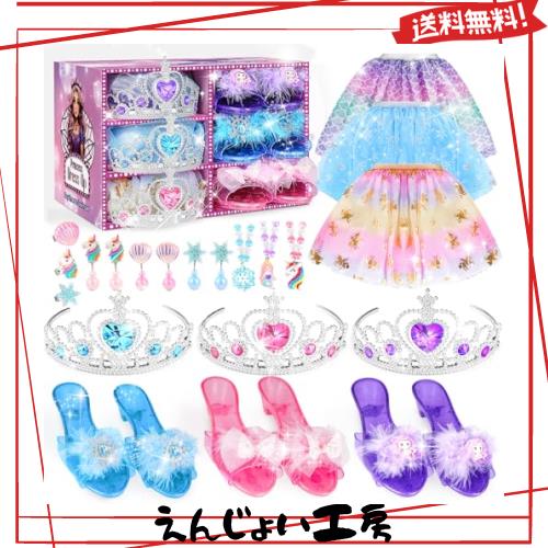 [Dreamon] プリンセス ドレス 子供 3セット 女の子 おもちゃ スカート、ネックレス、イヤリング、指輪、ハイヒール女の子 プレゼント 3 4