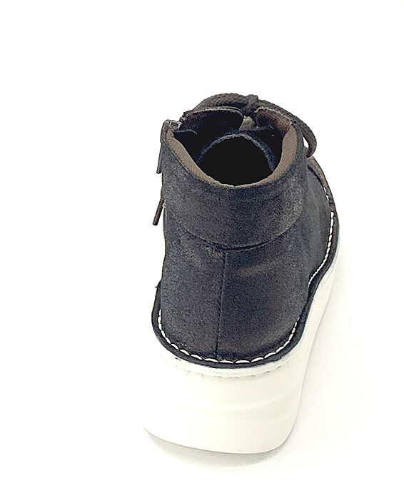 重厚感のあるアッパーに対し、ホワイトのソールがさらにお洒落な足元を演出。