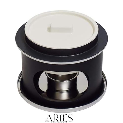 固形燃料でご飯を炊くことができる職人手作りの本格釜 火をつけて蒸らし時間を待つだけで料亭のようなご飯が楽しめる 熱を伝えやすいアルミ製で炊き上がりがふっくら美味しく仕上がる 白と黒のデザインが美しい、和風にも洋風のご飯にも合う、卓上かまどセット