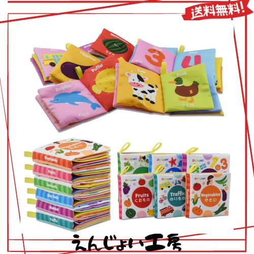 六主題・日本語+英語 - この布絵本セットはベビー、赤ちゃん、幼児向けの早期知育玩具です。果物、野菜、海洋生物、動物、乗り物、数字の6主題の布絵本が入り、毎ページは面白い図柄、簡単な日本語仮名と英単語が載っており、この布絵本セットで赤ちゃんは世界への最初認知ができます。