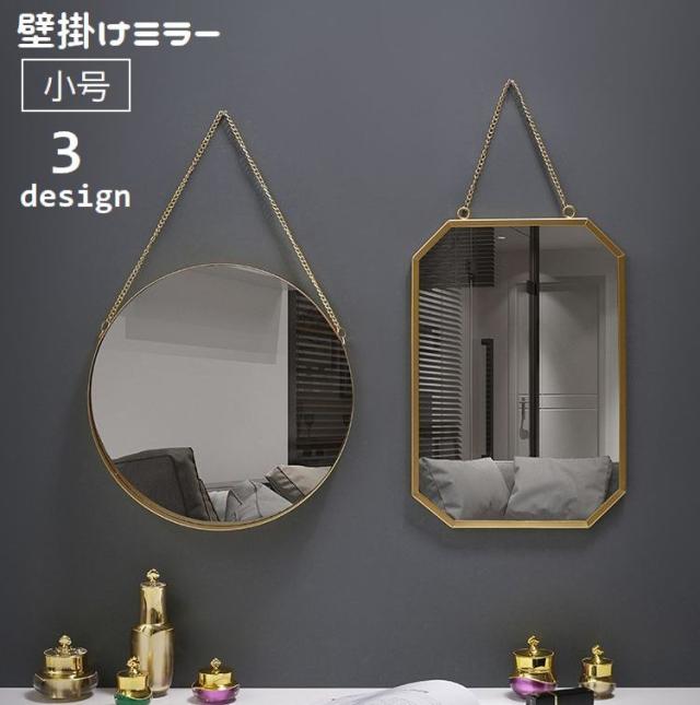 ウォールミラー 壁掛けミラー 鏡 かがみ チェーン 丸型 四角 六角形 吊り下げ インテリア アンティーク調 壁面 身だしなみチ