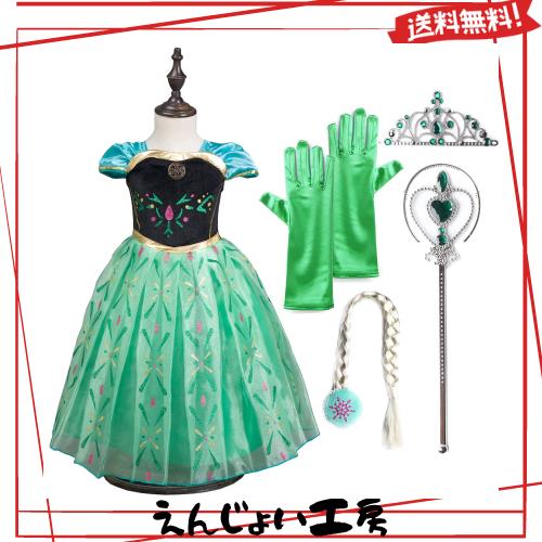 届いたその日から憧れのプリンセスになれる!エルサ アナコスプレ衣装 ドレス! とっても可愛いドレスコスチューム豪華7点セット☆