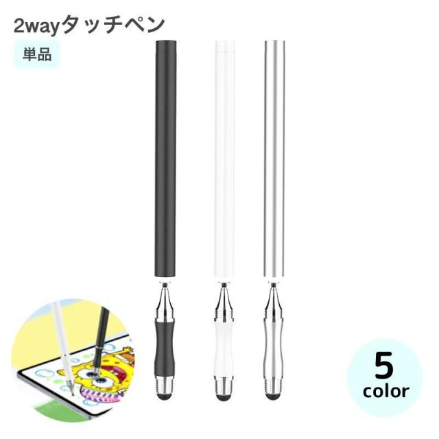 タッチペン スタイラスペン 2way タブレットアクセサリー スマホ タブレット用タッチペン スマホアクセサリー ブラック ホワ