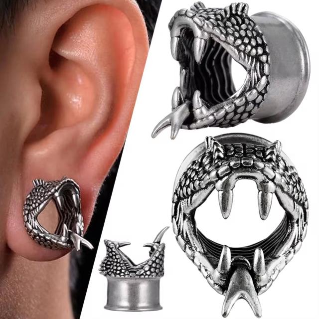 アンティークシルバーの真鍮製のダブルフレアに立体的に蛇をデザインしたユニークなダブルフレア型ボディピアス。大きく口を開け舌を出したスネイクが存在感を発揮してくれるホール系ボディーピアス。