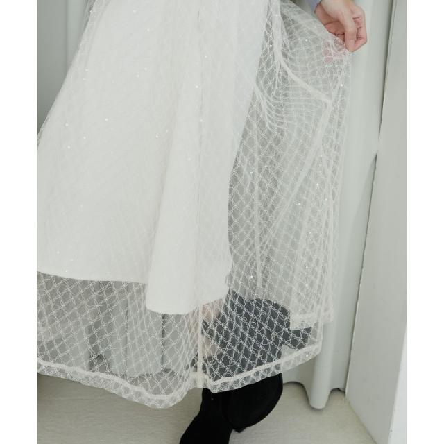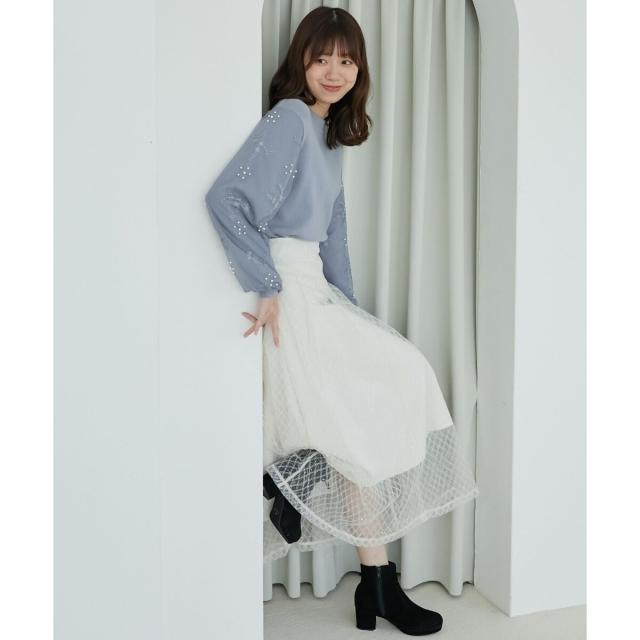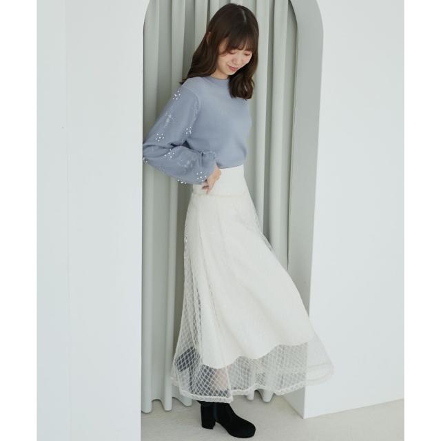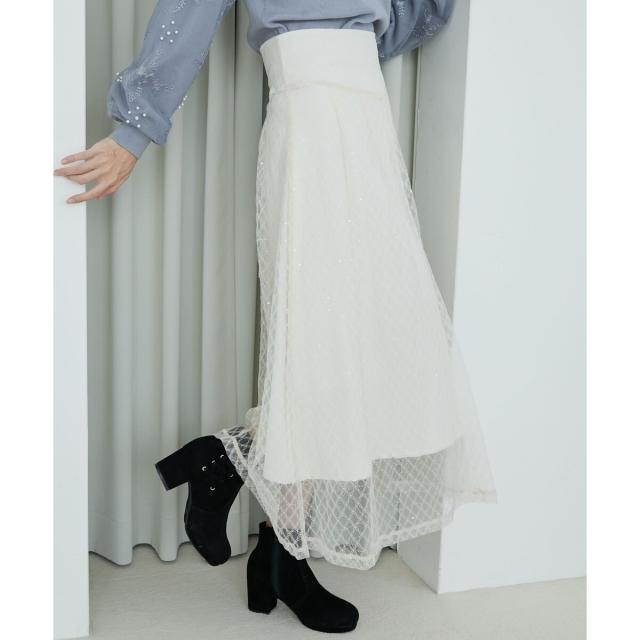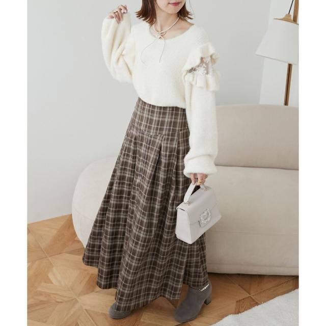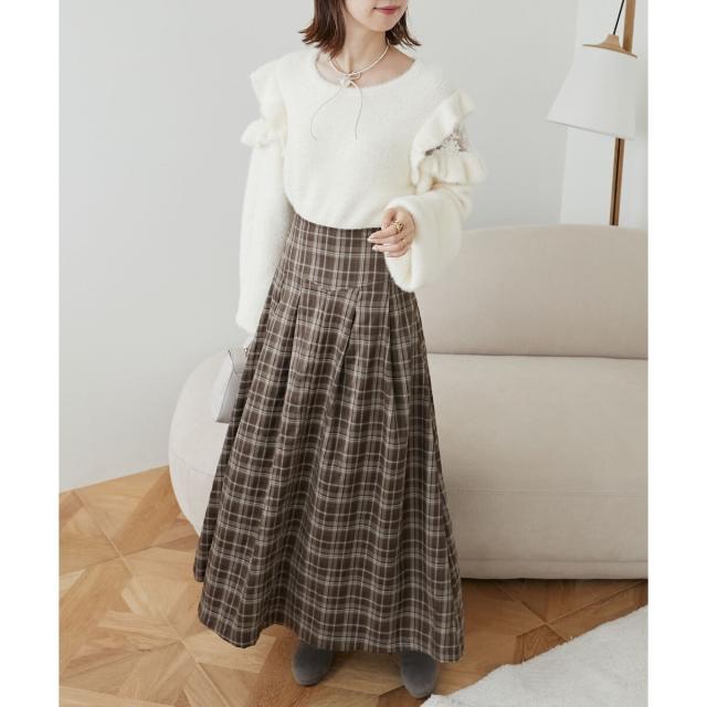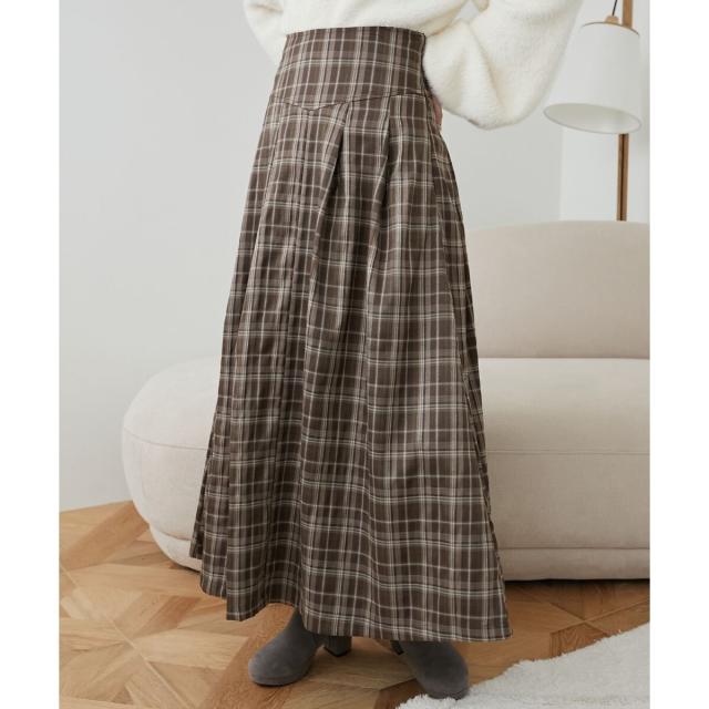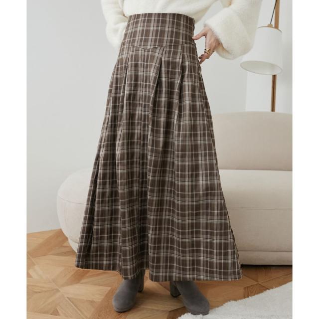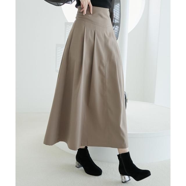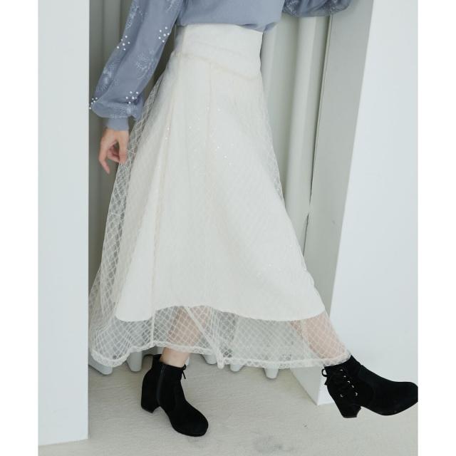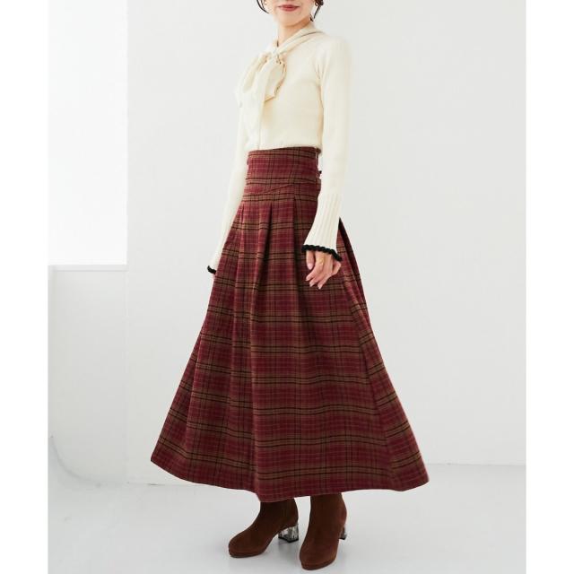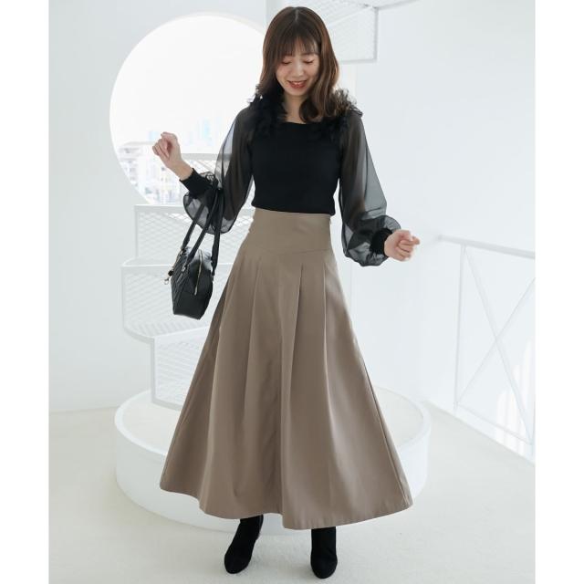ふんわりと広がるフレアシルエットがフェミニンムード漂うロングスカート。