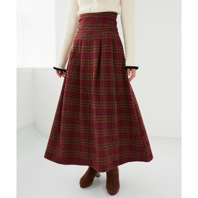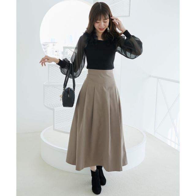 コルセット風に仕上げたウエストデザインとボリュームたっぷりのフレアシルエットがコーディネートにメリハリを与えてくれます。