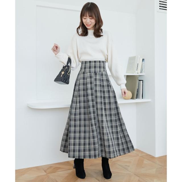 ブラウス、ニット等トップスのシルエットを選ばず使える万能な一枚です。
