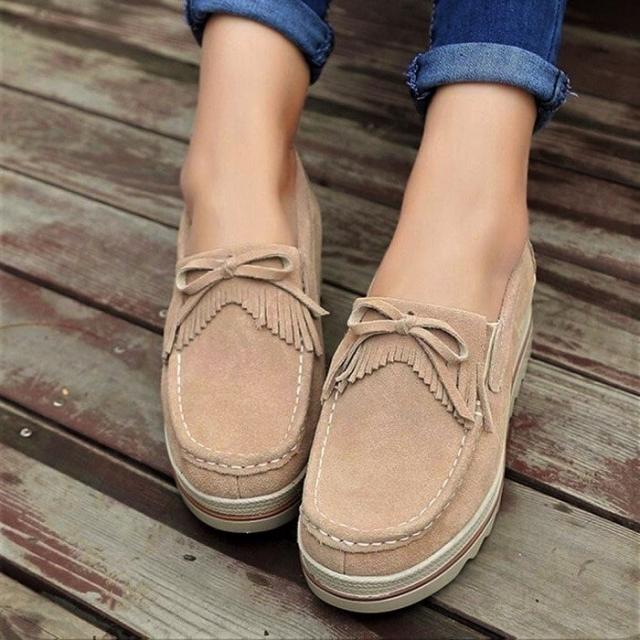 本革ベロア フリンジモカシンシューズ 厚底
