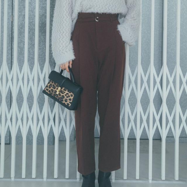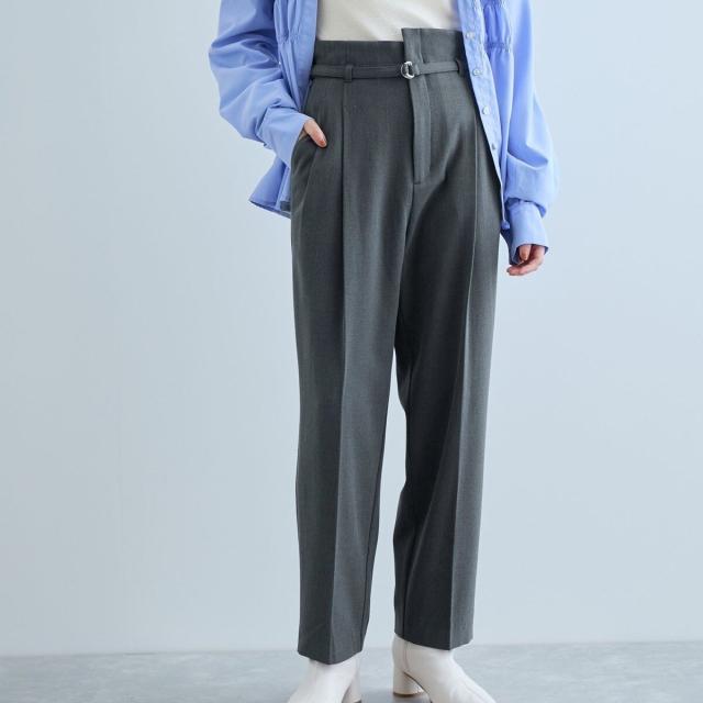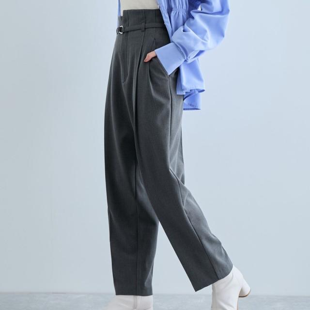 【美warm】ストレッチベルト付きハイウエストテーパードパンツ【アンチピリング/防シワ/洗える】