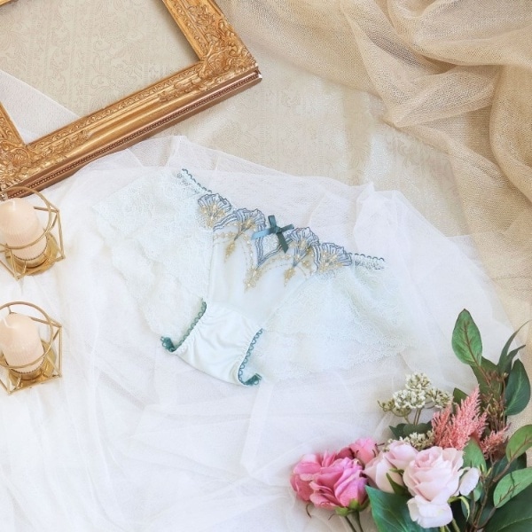 身生地は伸縮性のあるなめらかな素材を使用しているため、さらりとした気持ちの良い履き心地です。履き込みは浅く、サイドの幅が広いため安定感があります。足口はレースを使用し、フィット感がある作りでしっかりとヒップを覆い、食い込みの苦手な方にもおすすめです。