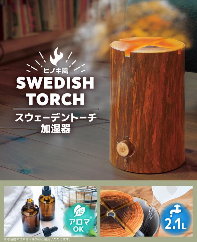 サンコー スウェーデントーチ加湿器 TRCHHMSBW 焚き火風 超音波式加湿器 ミスト&LEDでリアルな炎を演出 ヒノキ原木を忠実に再現した アロマ対応 加湿器 おしゃれ インテリア家電 冬 乾燥対策