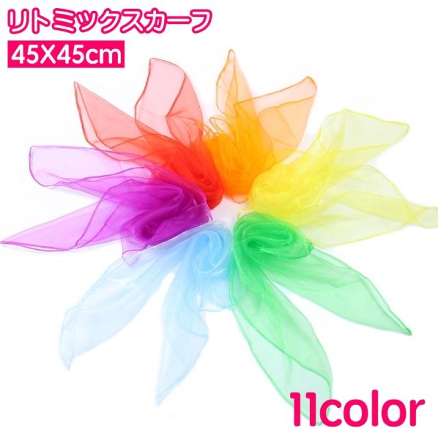 リトミックスカーフ 45×45cm キッズ 子供 子ども シフォン 薄手 正方形 四角形 無地 ダンス お遊戯 リズム遊び カラ