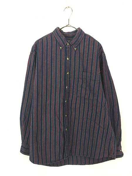 古着 90s LANDS' END マルチ ストライプ BD フランネル シャツ ネルシャツ L