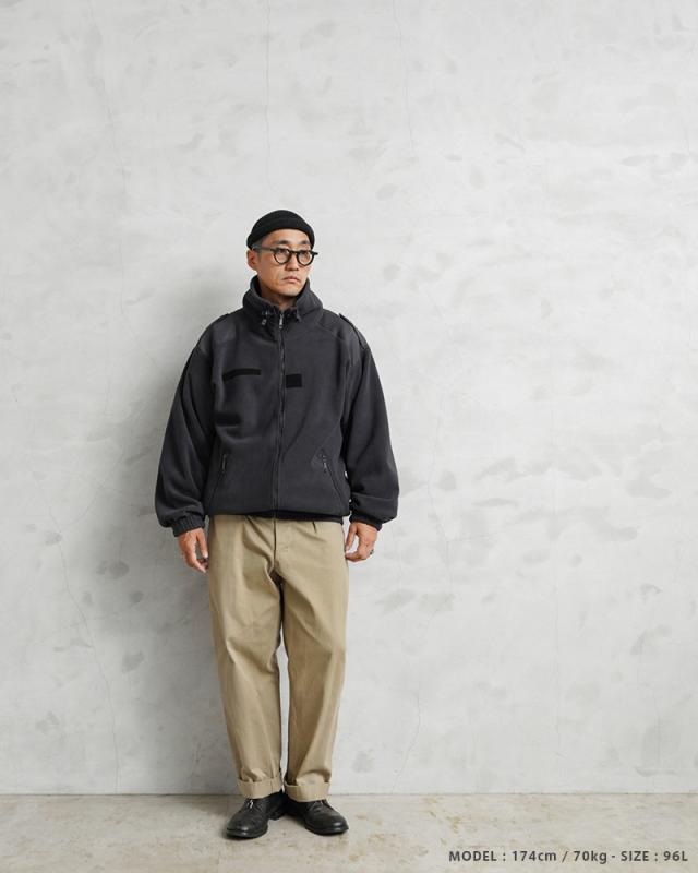 フランス軍より大変希少で厚手なフリースジャケットが入荷しました。首元まで覆うスタンドカラーデザインで首元にはドローコードが備わっていますので寒さの厳しい環境ではさらにその機能を発揮し、密度のあるフリース地で高い保温性をキープします。アウターとして単独で着用することはもちろん、お気に入りのミリタリーパーカーとレイヤリングすることで真冬の防寒ライナーとして着用可能。