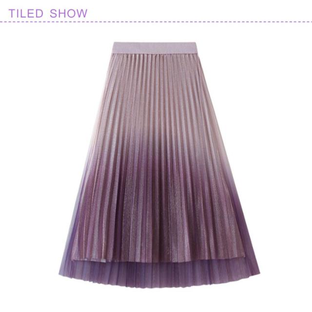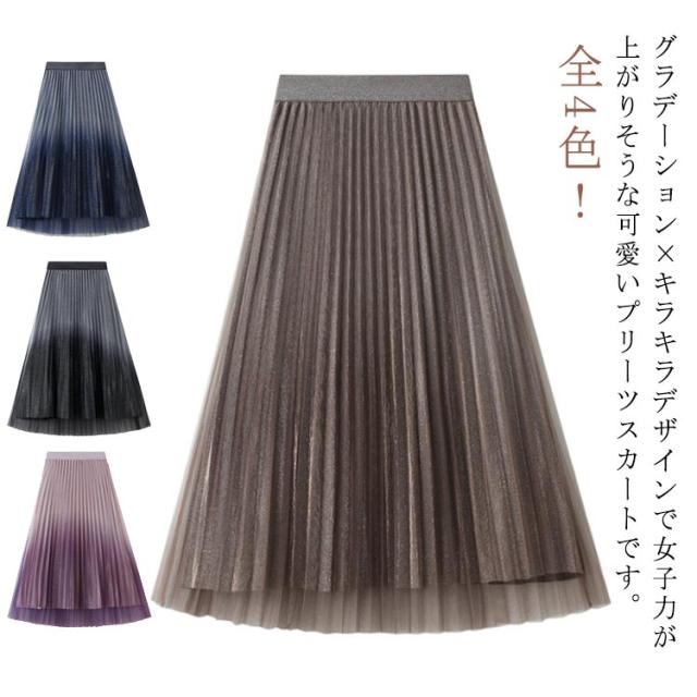 | 全4色!グラデーション×キラキラデザインで女子力が上がりそうな可愛いプリーツスカートです。 美しいシルエットが際立つ個性豊かなアイテムです。 トップスをインしたスタイルにも相性バッチリ。 1枚でスタイルのアクセントに、手持ちの単品に合わせるだけでおしゃれなコーディネートが完成するのでおすすめです。 | |