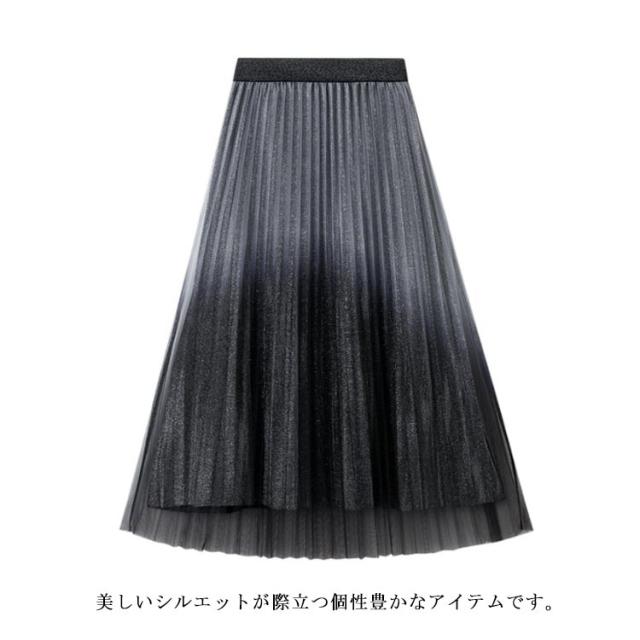 キラキラ フェミニン グラデーション チュールスカート Aライン ゆったり フレアスカート スカート ハイウェスト ウェストゴム キラキラ お呼ばれ エレガント かわいい おしゃれ