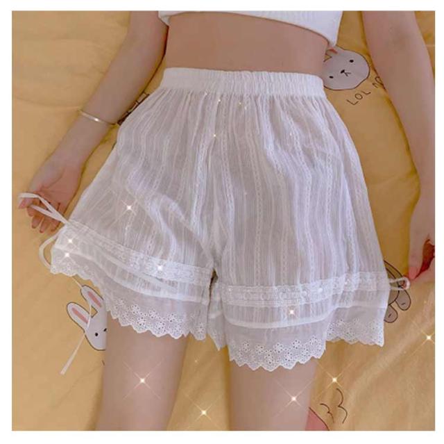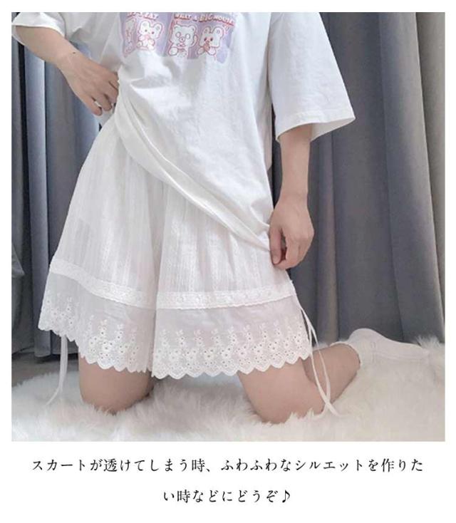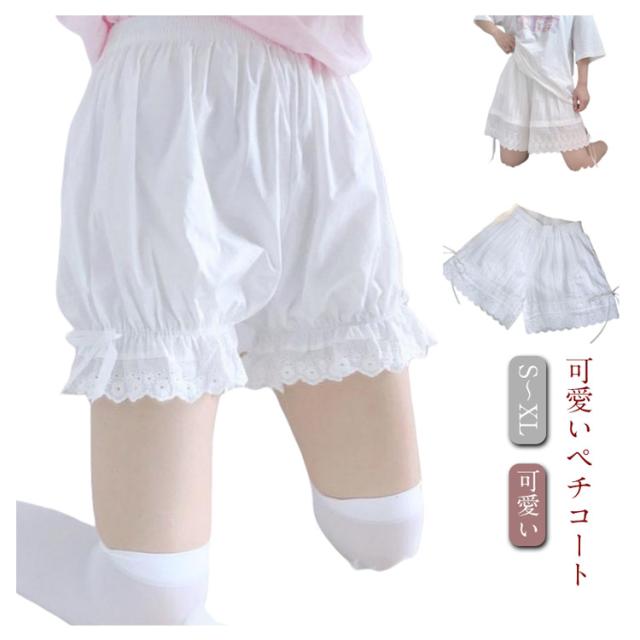 コスプレ衣装 フリル 可愛い フリル 下着 レディース インナー かぼちゃパンツ 肌着 ショート ボトムス ロリータ ペチパンツ ウエストゴム リボン 見せパン コスプレ衣装 レース おしゃれ コスチューム ドロワーズ ホワイト 綿