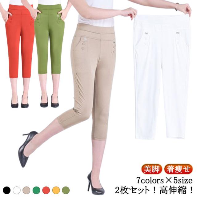 2枚セット レギパン スキニーパンツ 7分丈 レギンス パンツ 高伸縮 2枚セット パンツ レディース パンツ サマーパンツ ストレッチ ハイウエスト ボトムス 春夏 美脚 パンツ 着痩せ インナーパンツ 無地 シンプル カジュアル おしゃれ