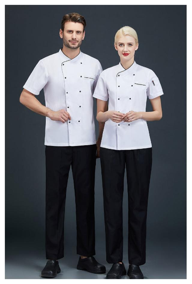 | 後ろはメッシュのデザインで通気性抜群。 素材を使用しており、軽くシワになりにくく、洗濯時の乾燥が速く、取り扱いも簡単です。 着心地の快適さを兼ね備えて、ナチュラルなデザインで、ワークシーンをスタイリッシュに演出します。 男女問わず、年齢問わず幅広くご使用いただけます。 レストラン、ホテル、カフェ、ベーカリー、 その他の調理作業用のウエーターユニフォーム作業服に最適です。 | |