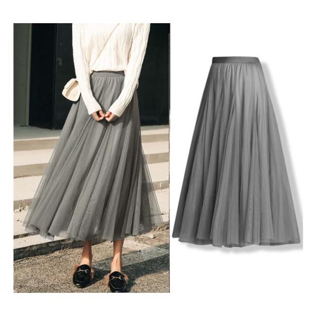チュールスカート ロン スカート チュール フレア ロング レディース ウエストゴム チュールスカート プリーツスカート 無地 フレアスカート ミモレ丈 プリーツ フレアスカート 体型カバー ウェストゴム