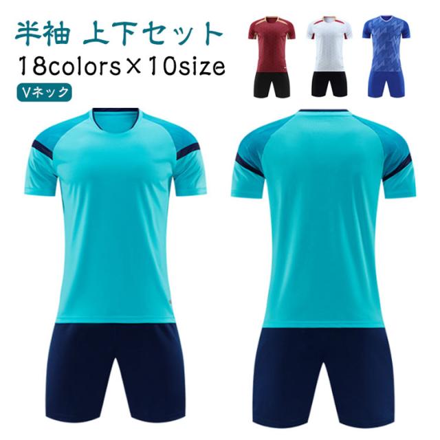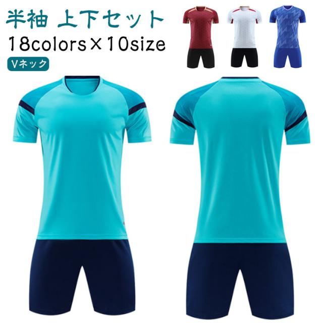 サッカー キッズ 大人 半袖 上下セット tシャツ 子供用 サッカーウェア 2点セット フットサルウェア サッカーユニフォーム ジュニア フットボールシャツ 上下セット S ユニフォーム Vネック トレニンーグウェア ショートパンツ