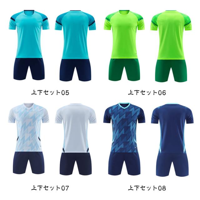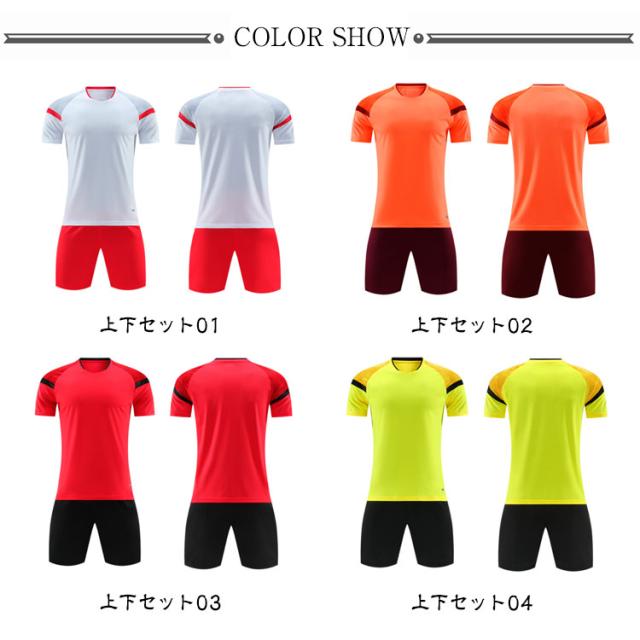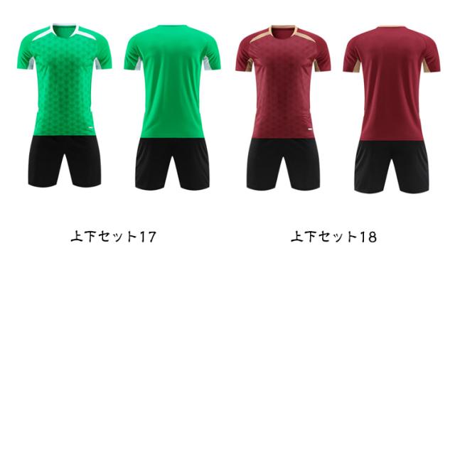| 18colors×10size 通気性優れる素材使用、Vネック半袖tシャツ+ショートパンツのスポーツウェア。 競技用スポーツ服にして、チームワークに促進してくれるユニフォーム! | |