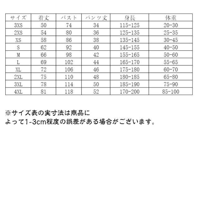 | サイズ | XXXS XXS XS S M L XL 2XL 3XL 4XL |